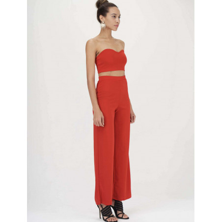 Conjunto de top corto tubo unicolor con pantalones Palazzo.